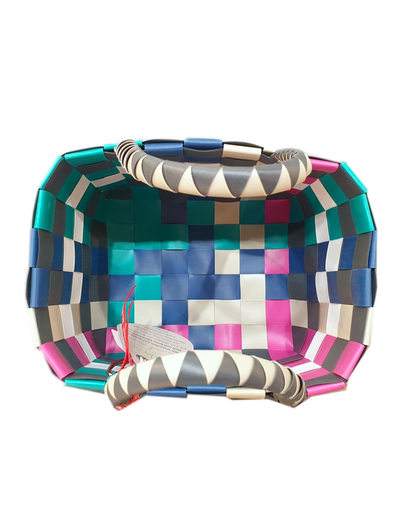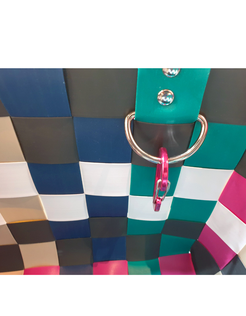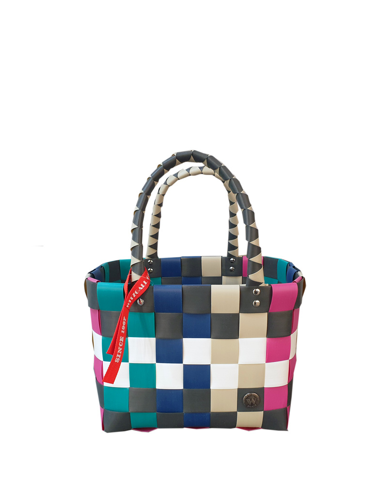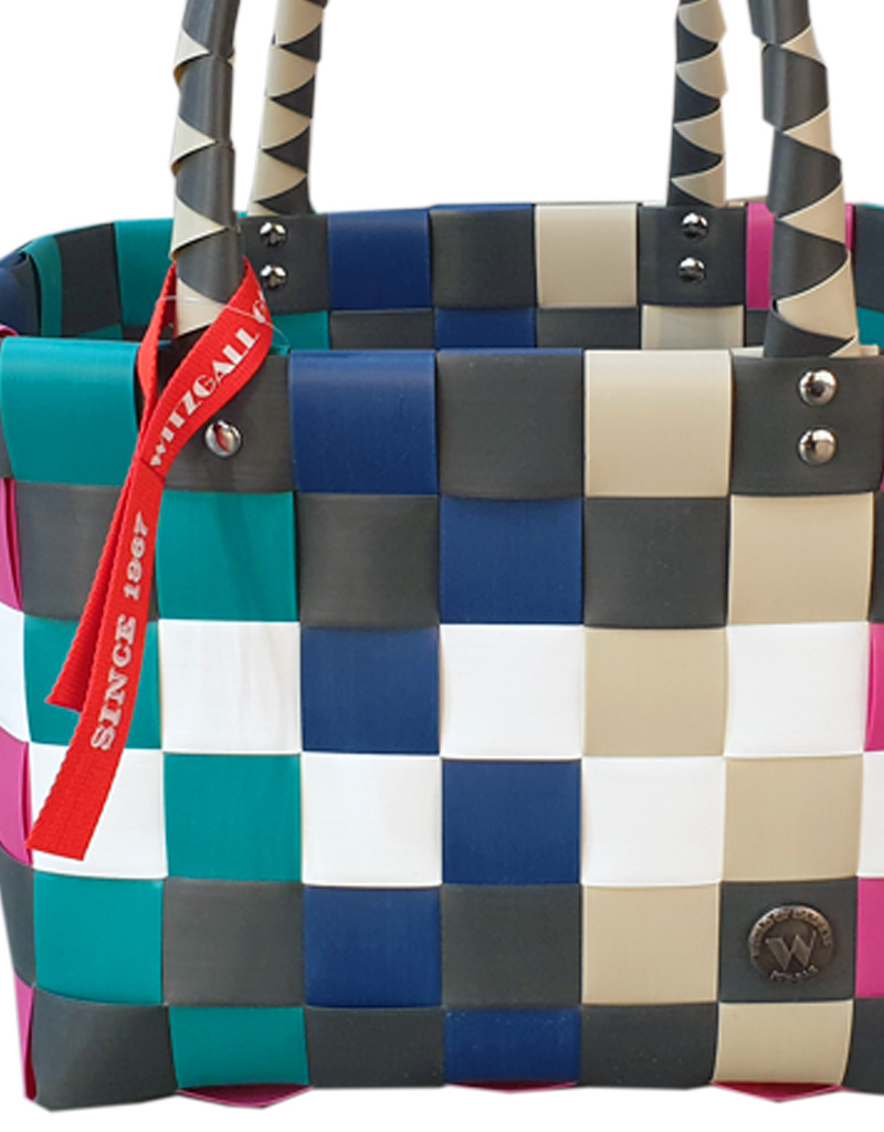 Bunter Farbmix trifft robustes Material! Der kleine Einkaufsshopper von Witzgall ist aus recyceltem Kunststoff geflochten, wodurch er abwaschbar und strapazierfähig ist. Ein praktischer Karabiner sorgt dafür, dass das Wichtigste immer griffbereit ist.