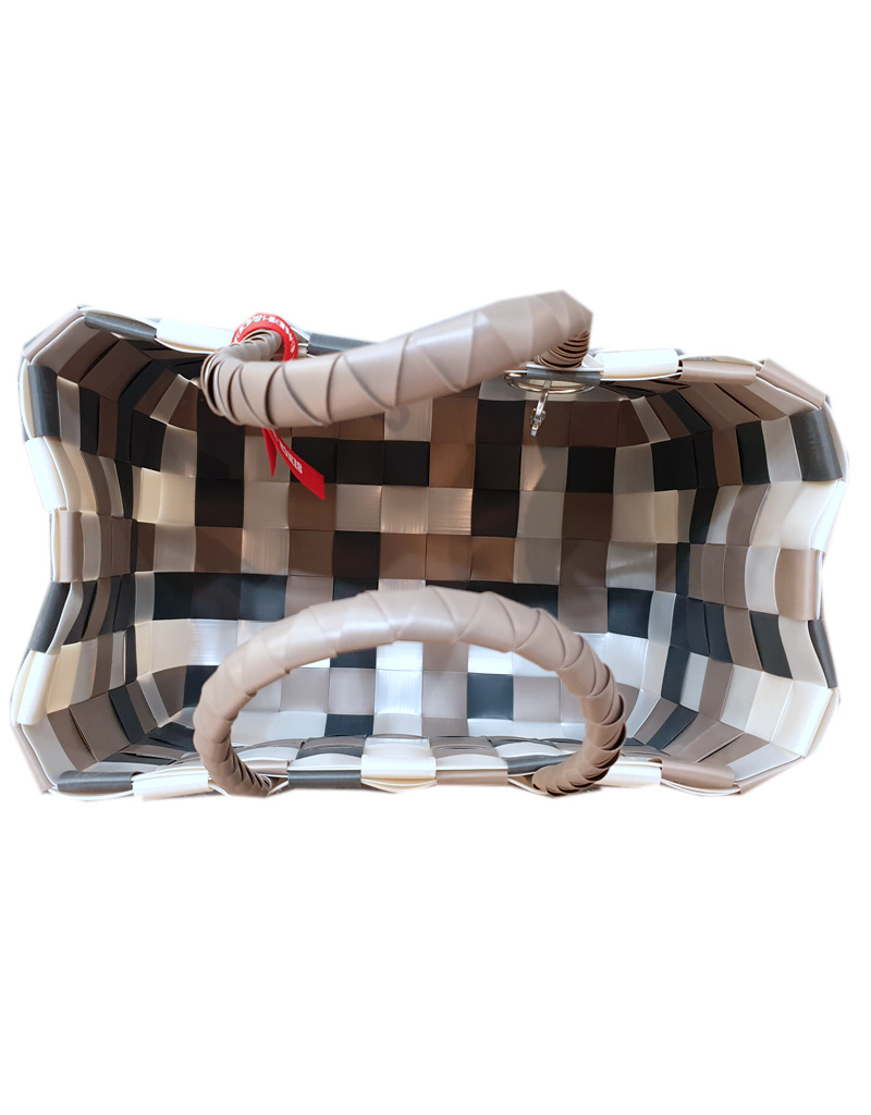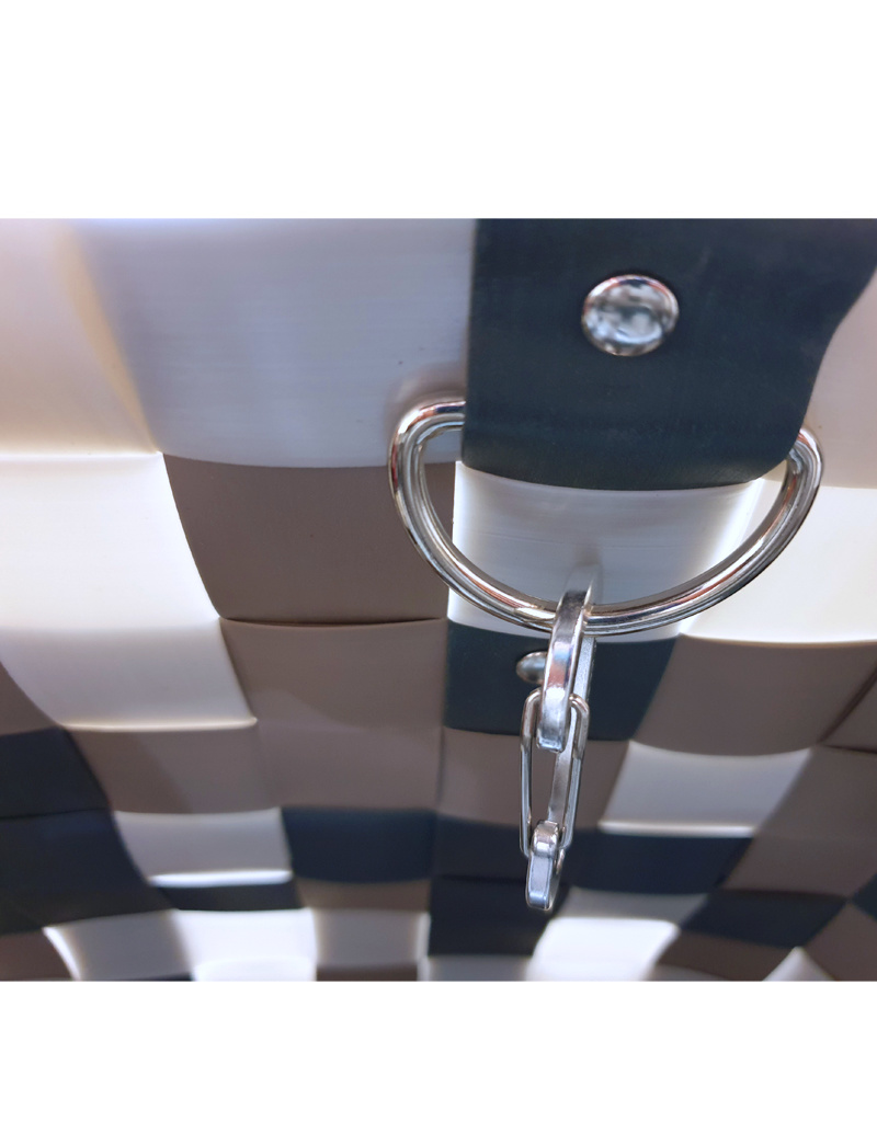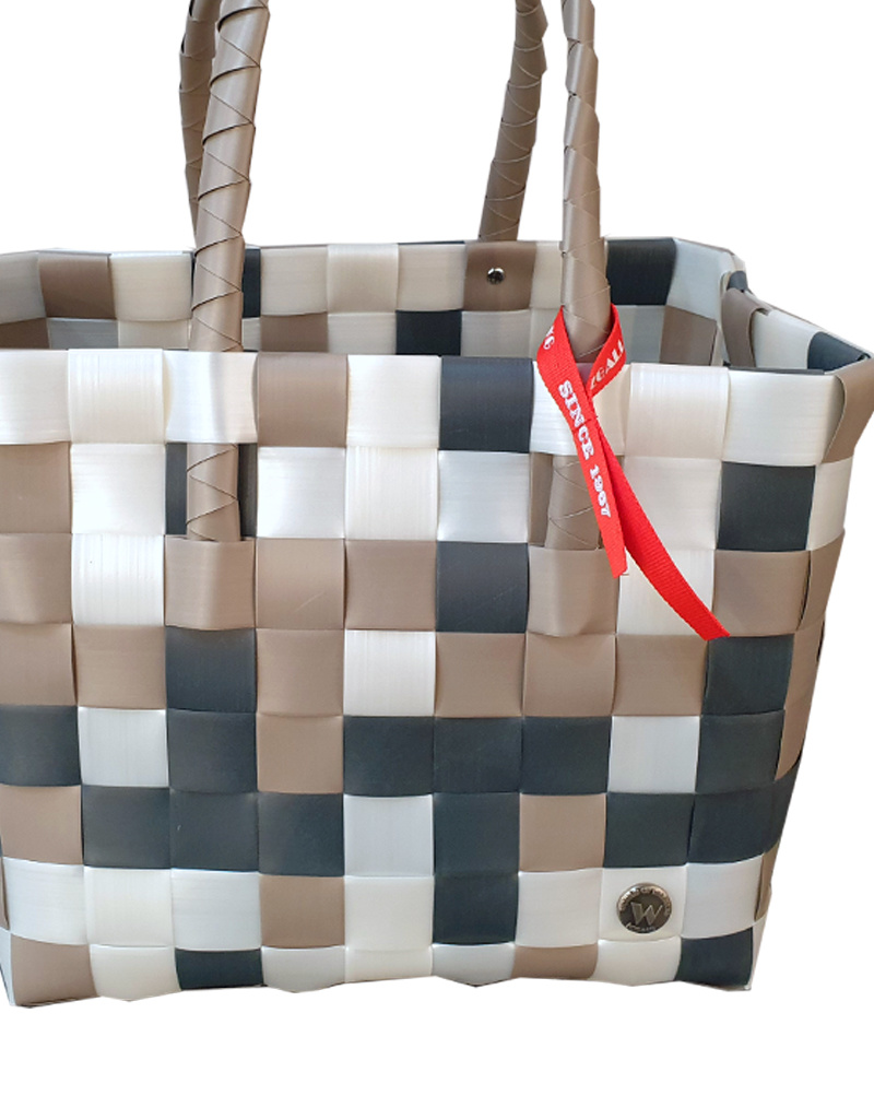 Die Allroundtasche ist aus recyceltem Kunststoff geflochten und damit abwaschbar und strapazierfähig. Der praktische Karabiner hält das Wichtigste griffbereit. Auch am Strand oder Badesee macht er als Strandtasche eine tolle Figur.