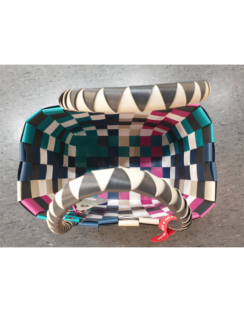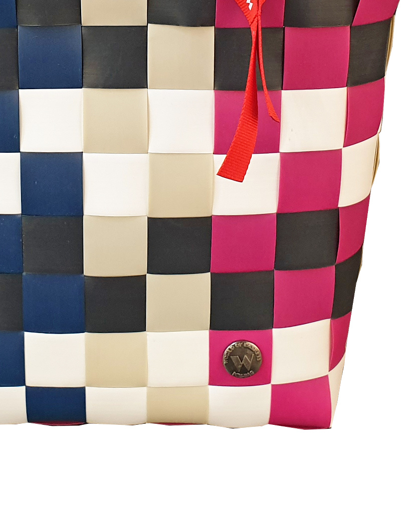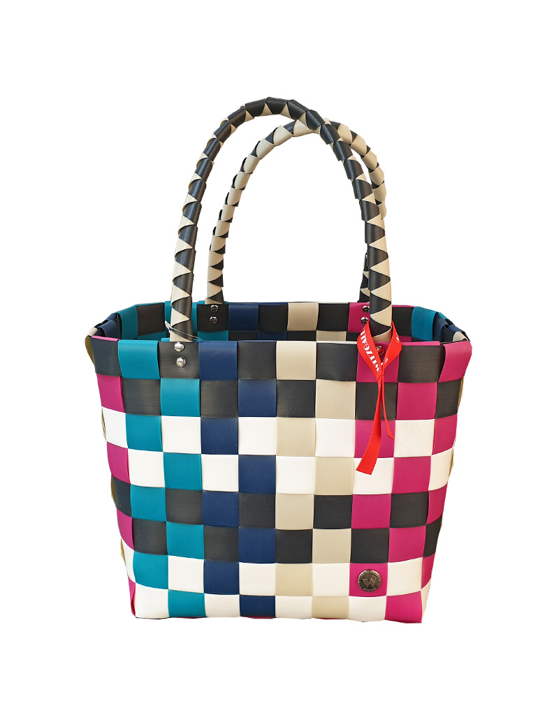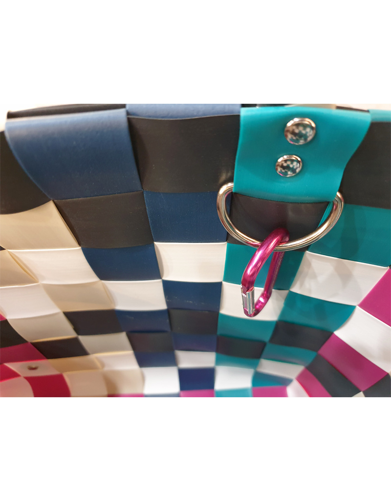 Ein toller Farbmix für die gute Laune. Die Allroundtasche ist aus recyceltem Kunststoff geflochten und damit abwaschbar und strapazierfähig. Der praktische Karabiner hält das Wichtigste griffbereit.