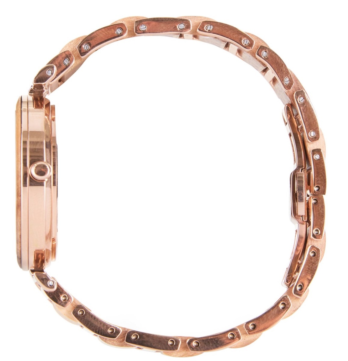 Die LAIMER Damenuhr MIA – Modell U-0153 vereint Eleganz, Natürlichkeit und feine Details in einem stilvollen Design. Das polierte Edelstahlgehäuse in IP-Roségold harmoniert perfekt mit der warmen Holzlünette und dem braunen Gliederarmband aus echtem Holz.
