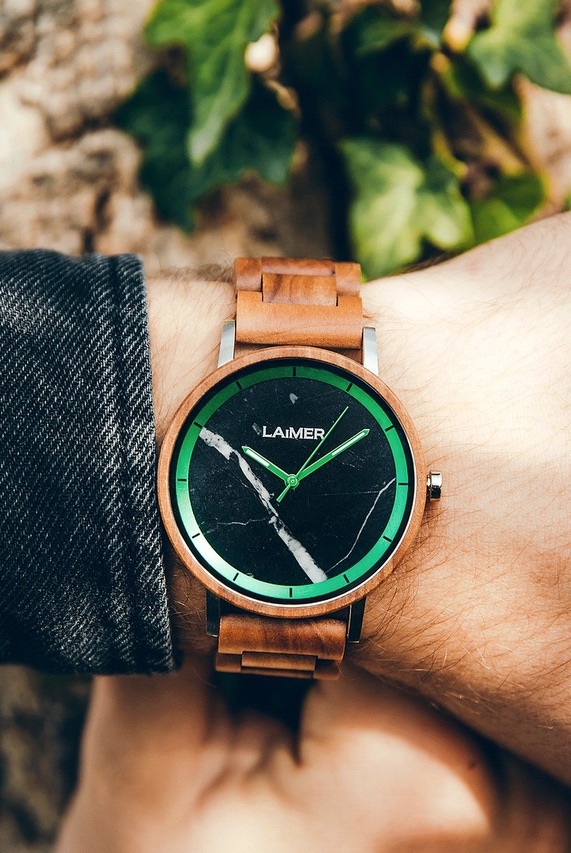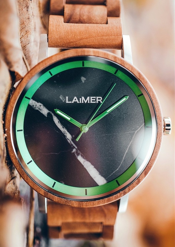 Unikat aus Naturmaterialien: Die Laimer LUCA U-0166 mit echtem Schiefer-Zifferblatt