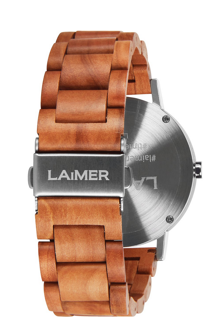 Die Laimer LUCA U-0166 ist eine moderne Unisexuhr, die natürliches Design und präzise Uhrentechnik elegant verbindet. Das Gehäuse und das Gliederarmband bestehen aus sorgfältig verarbeitetem Apfelholz, dessen warme, lebendige Maserung der Uhr eine harmonische, organische Ausstrahlung verleiht.
