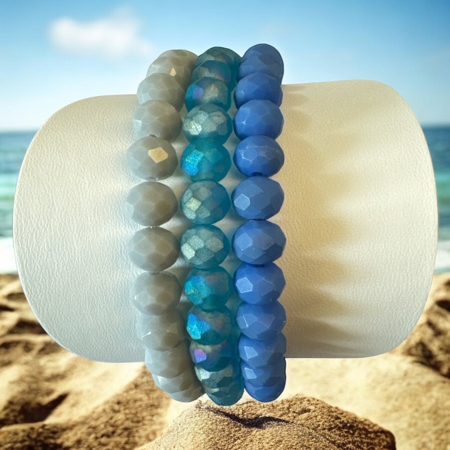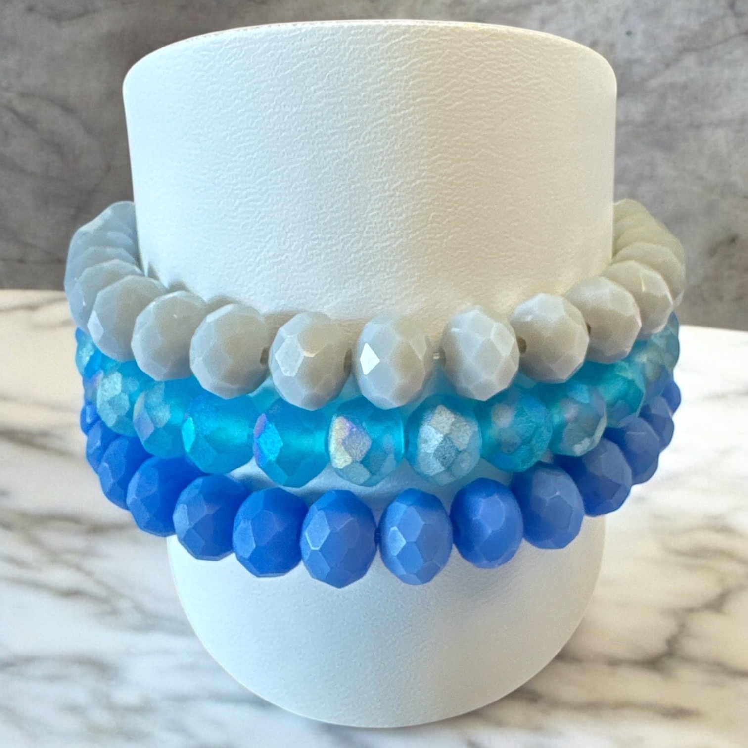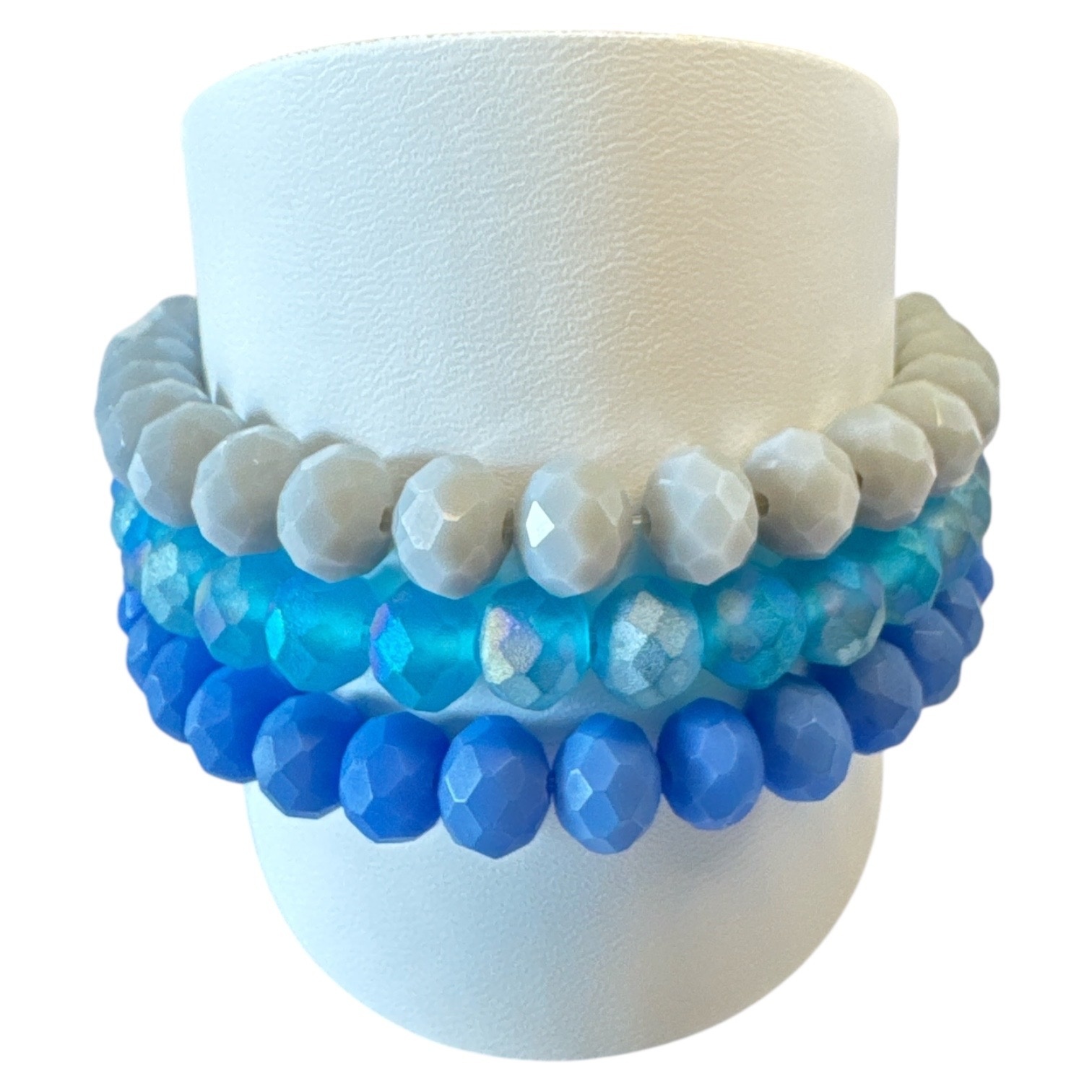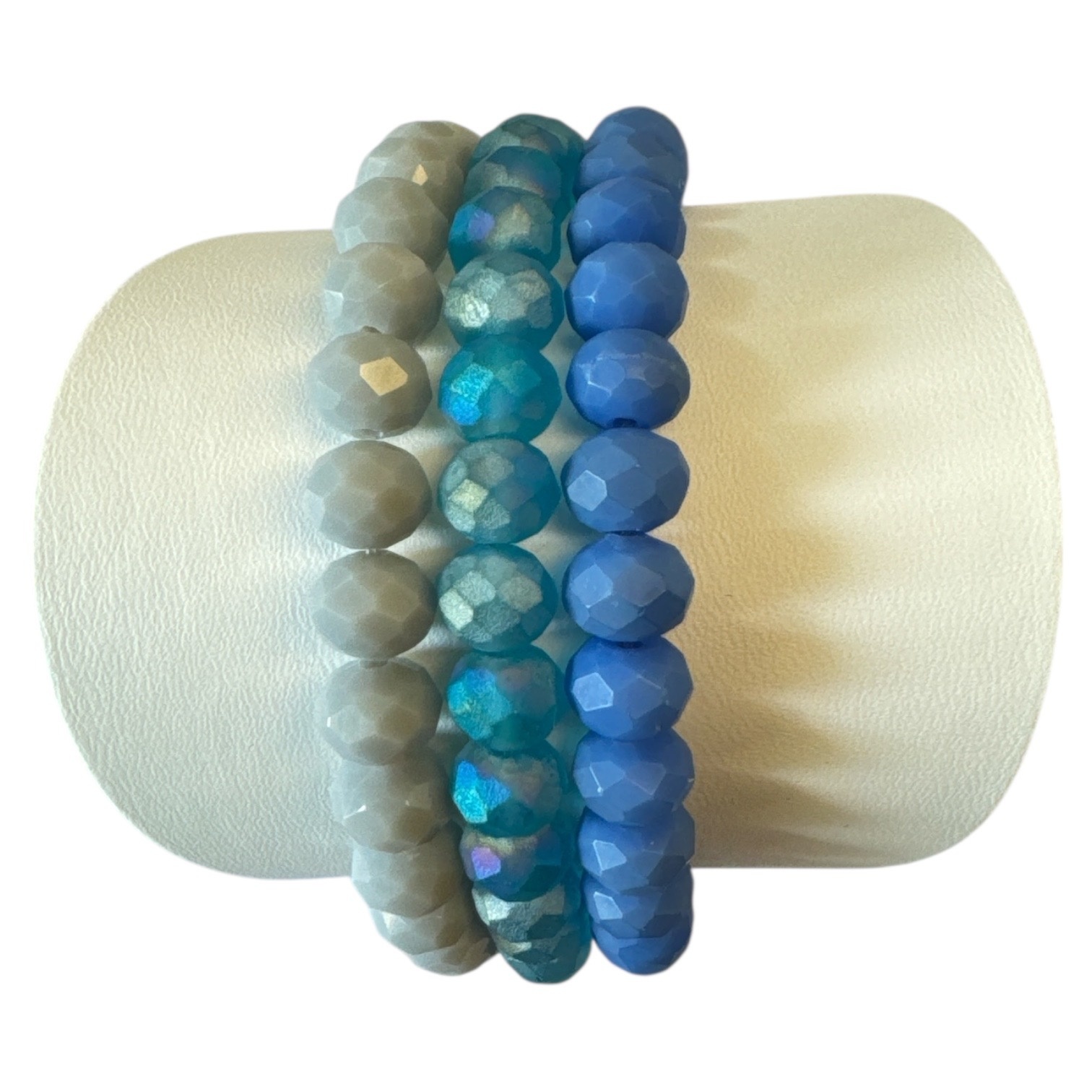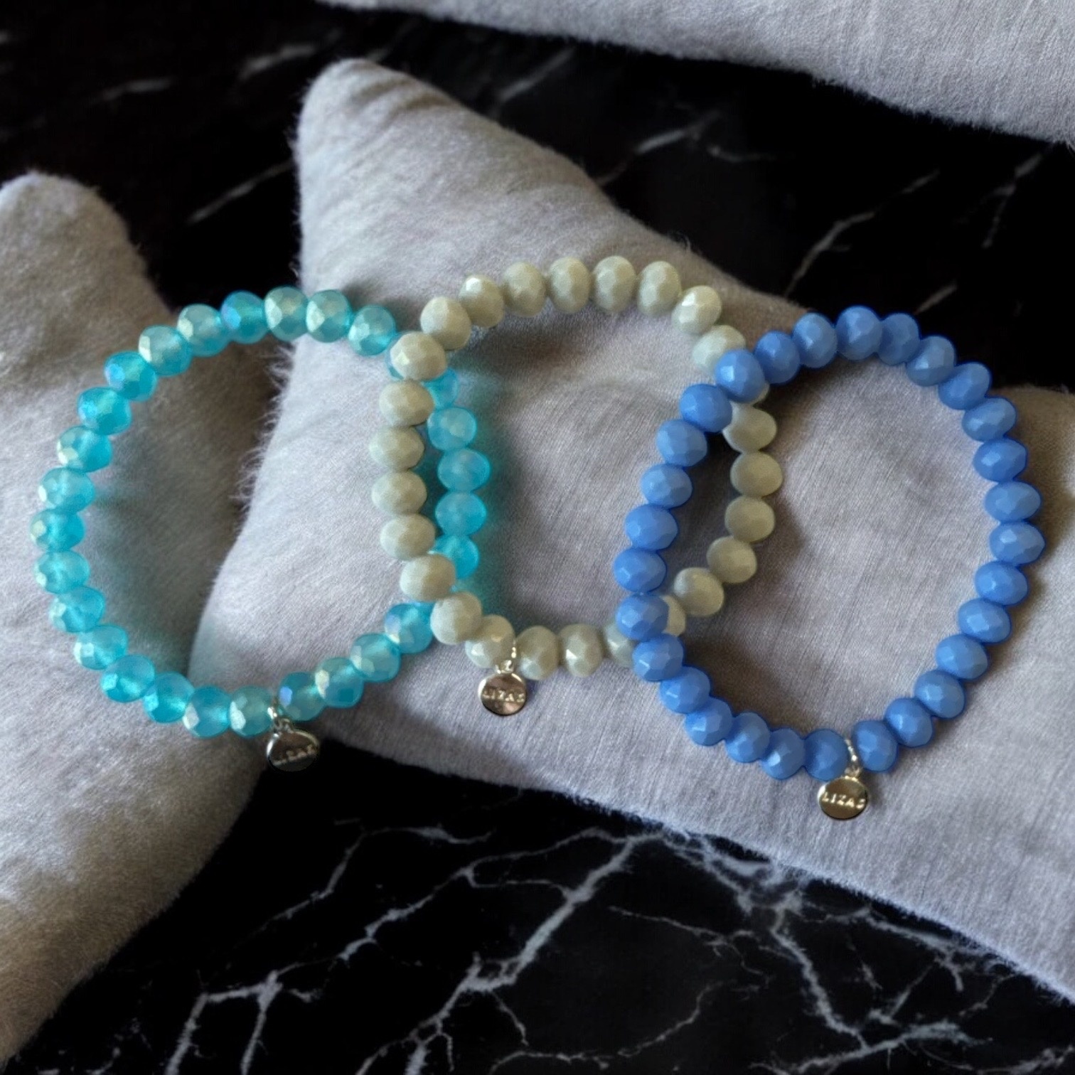 LIZAS Armband-Set 6 mm – Glasperlen in Blau, Hellgrau & Hellblau