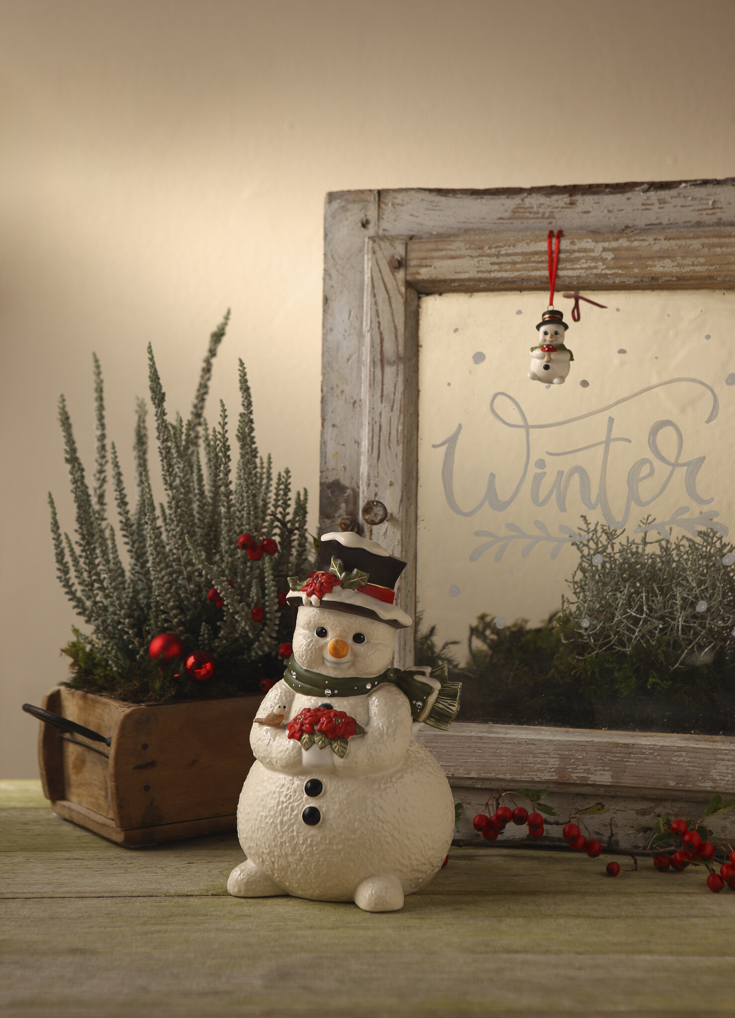 Herr Frostig mit rotem Weihnachtsstern – limitierte Winterfigur 2025